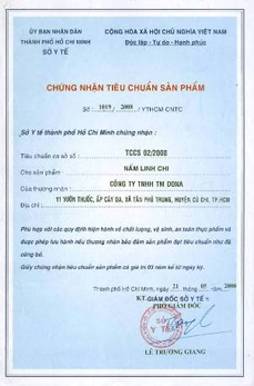 Nấm linh chi Nhật Bản được công ty DONA cấy mô nuôi trồng theo công nghệ Nhật. Mỗi ngày ta dùng 5 lát (hoặc 1 tai nấm) nấu cho 1,5 lít nước, đun sôi 15 phút Có thể dùng nóng hoặc lạnh, hoặc thêm đường phèn hay mật ong tùy thích Công dụng: Hỗ trợ về tim mạch, giảm cholesterol trong máu, hỗ trợ điều trị tiểu đường, tăng sức đề kháng cho cơ thể, phòng ngừa tế bào ung thư,...